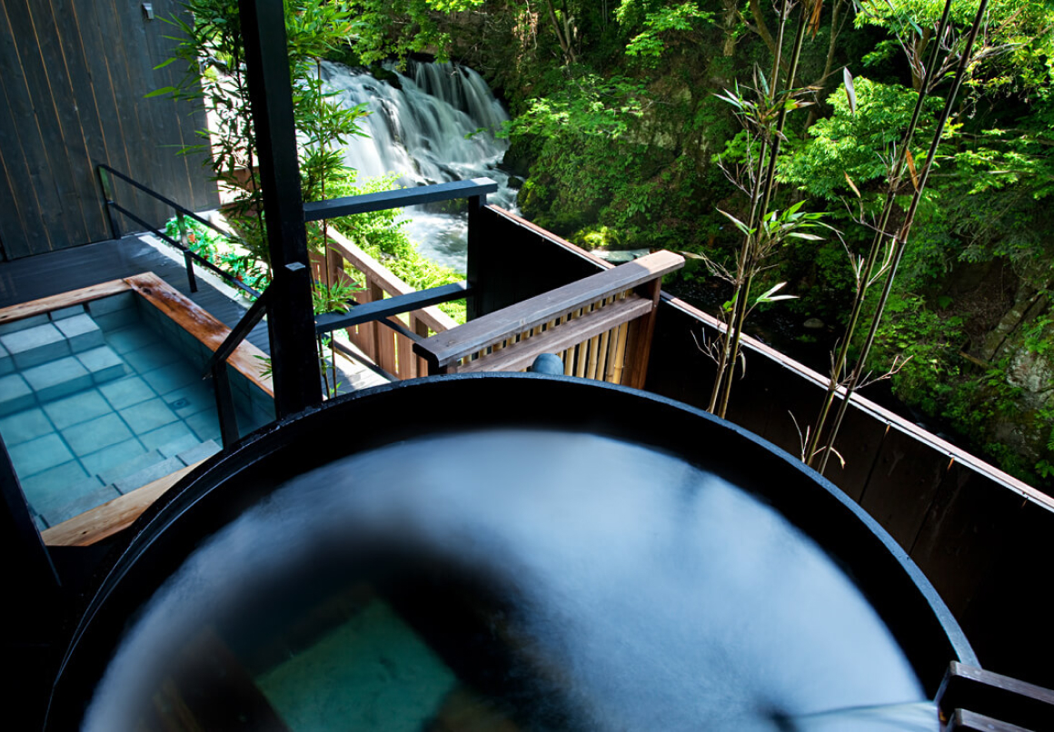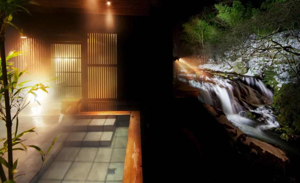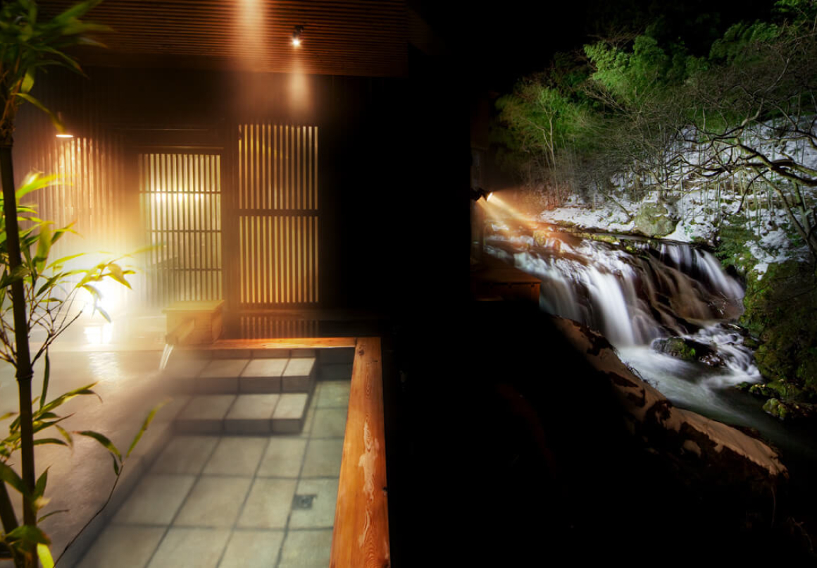 伏見ヶ滝の真横に位置する「瀧美の湯」。その昔、源泉の脇の瀧があまりに美しかったことで名づいた由来があります。「日本百名宿」でも紹介されたことがある美しさを現代でも引き継いでみることができます。